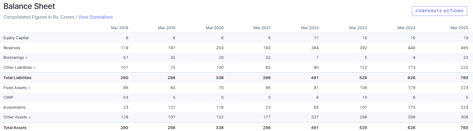 Net cash business with 495Cr Reserves and 33Cr Debt