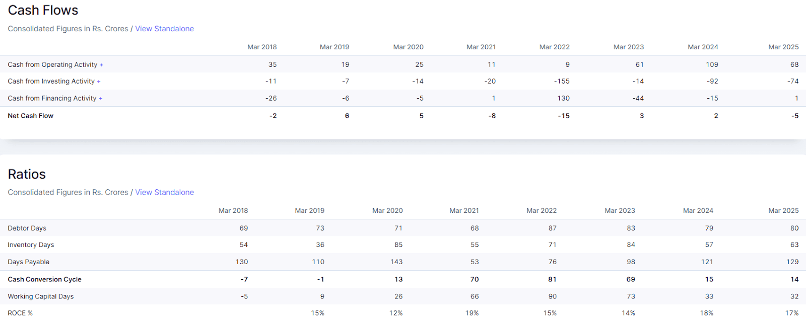 Management reiterated their strong cash conversion cycle and emphasized that they expect OCF to improve further from FY26 as new capacity utilization improves, especially in injectables.
